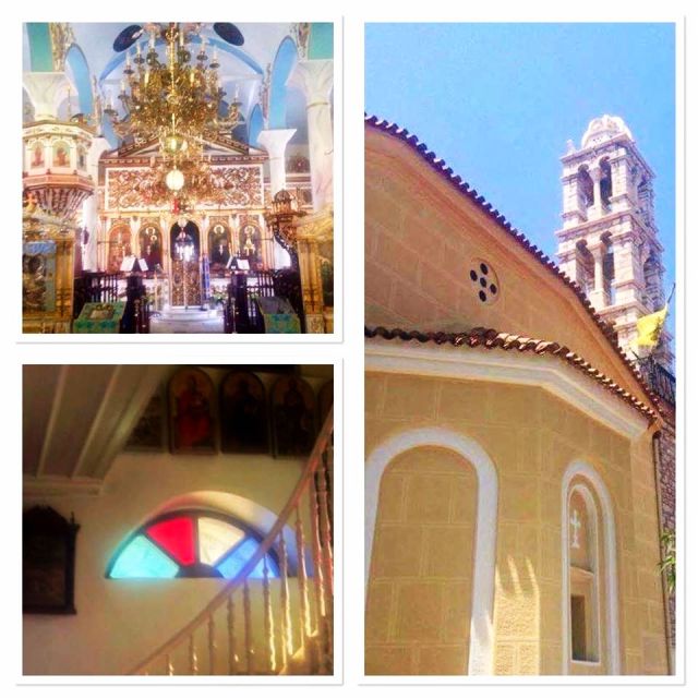 I eventually found myself in the Church of the Nativity of the Blessed Virgin (Panagia Limnia) high up in Skiathos Town’s upper neighbourhood. Built in 1838, its beautiful bell tower can be seen from the boat approaching the town. The skull was indeed inside the church, hidden away upstairs beneath a silk sheet. I had a feeling of trepidation as I followed the church warden up the stairs and must admit that the viewing was an unexpectedly slightly grizzly experience.