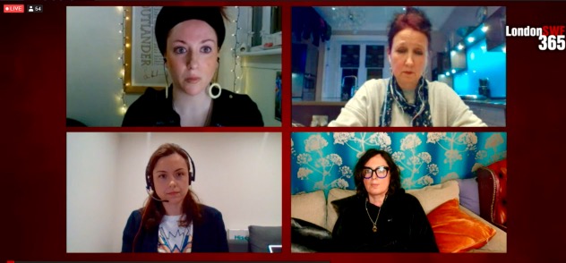 Moderator Maureen Hascoet, Outlander Exec Sara Harkins, Reporter Joanna Tilley and The Guilty Feminist Deborah Frances-White discuss writing for the female gaze